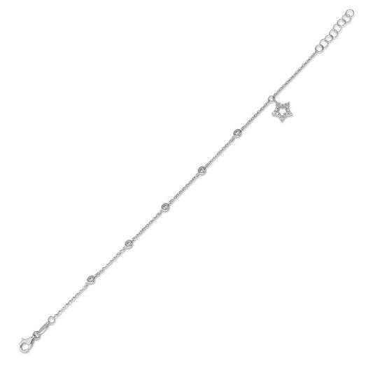 Bracelet Or blanc 18K Zircone Étoile 16-18 cm