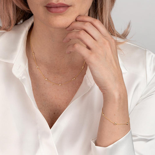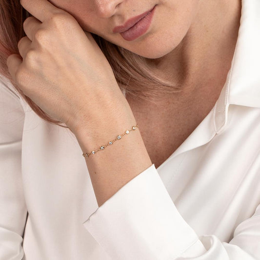Bracelet Or jaune 14K Zircone 35 Pierres 16-18 cm
