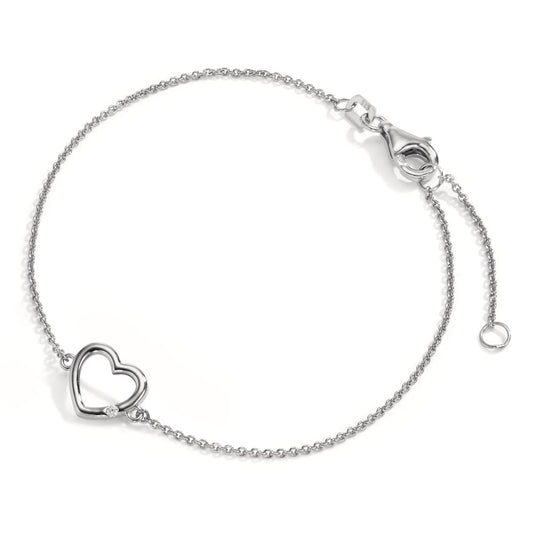 Bracelet Or blanc 14K Diamant 0.01 ct, w-si Coeur 15.5-18 cm