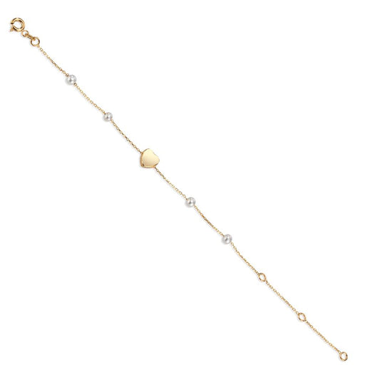 Bracelet Or jaune 14K perle d'eau douce, 4 Perles 3-3.5 mm Coeur 12-16 cm