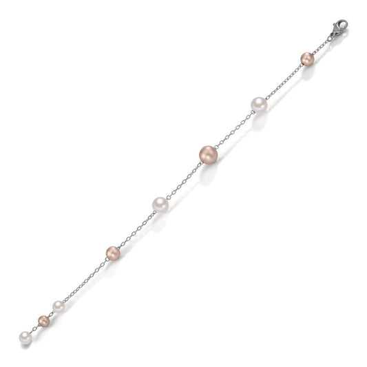 Bracelet Acier inoxydable, Aluminium rosé PVD perle de culture blanc, 4 Perles, 7 mm 17-18.5 cm Ø8 mm