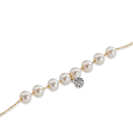 Bracelet Or jaune 18K Diamant 0.005 ct, tc-si perle d'eau douce, 8 Perles 3.5-4 mm 16-18.5 cm