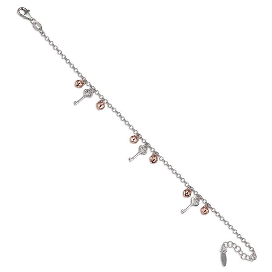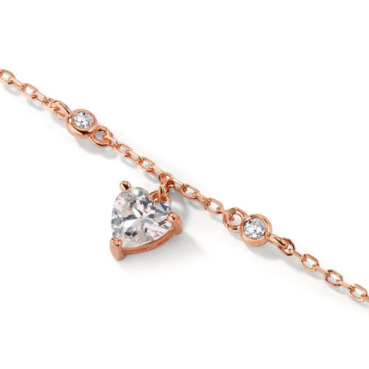 Bracelet Argent Zircone rosé Plaqué or Coeur 16-19 cm