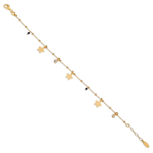 Bracelet Argent Zircone 4 Pierres jaune Plaqué or Étoile 17-19 cm