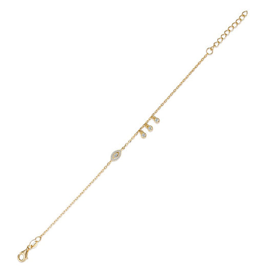 Bracelet Argent Zircone 9 Pierres jaune Plaqué or 16-19 cm