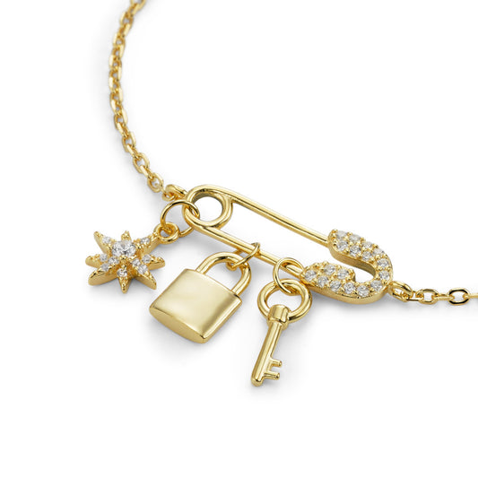 Bracelet Argent Zircone jaune Plaqué or 16-19 cm