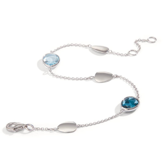 Bracelet Or blanc 14K Topaze London Blue 2 Pierres 17-19 cm