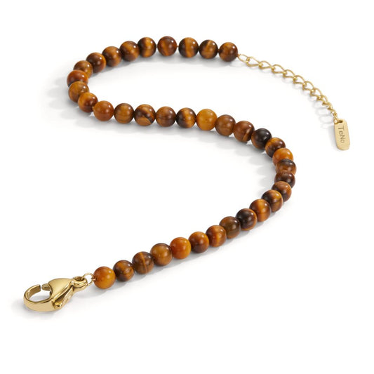 Bracelet Acier inoxydable L’œil de tigre jaune PVD 17.5-19.5 cm Ø4 mm