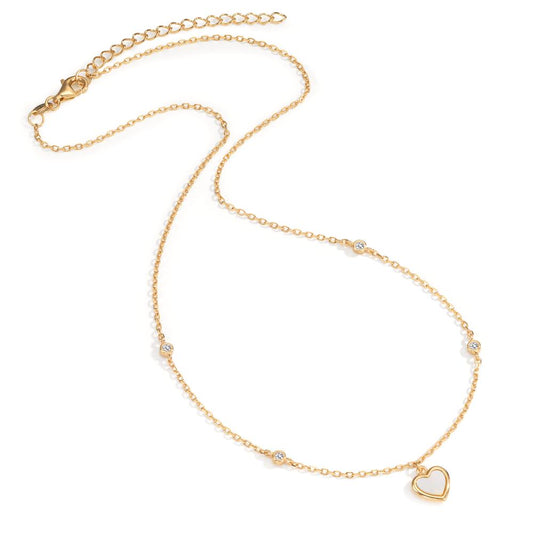 Collier Argent Zircone 4 Pierres jaune Plaqué or nacre blanc Coeur 40-45 cm