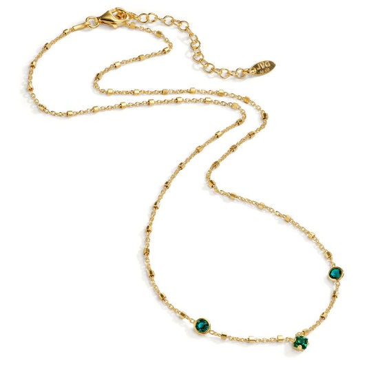 Collier Argent Zircone vert, 3 Pierres jaune Plaqué or 40-45 cm