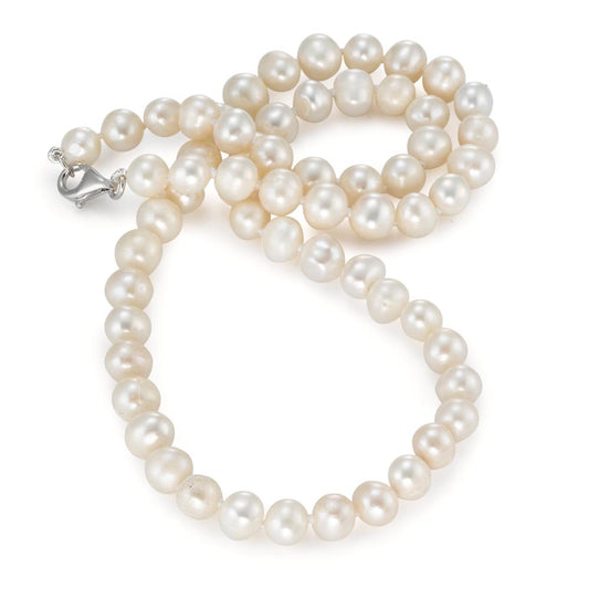 Chaînette avec pendentif Acier inoxydable Zircone perle d'eau douce blanc, 6.5 mm 42 cm