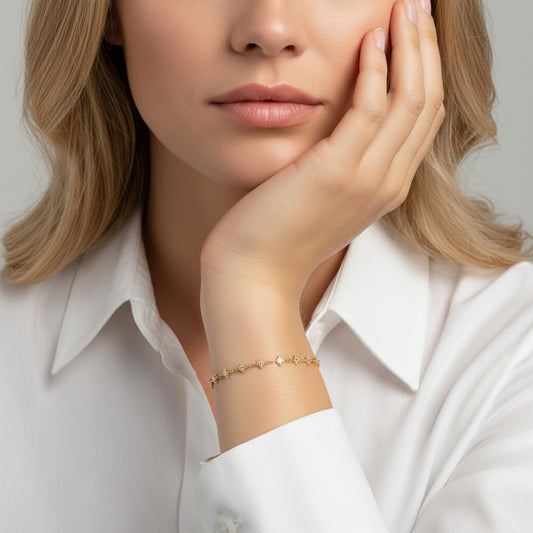 Bracelet Argent Zircone 12 Pierres jaune Plaqué or 16.5-18.5 cm