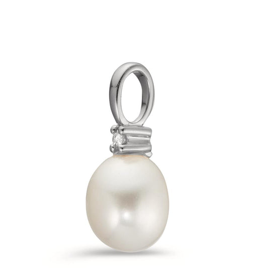 Pendentif Or blanc 18K Diamant 0.02 ct, w-pi1 perle d'eau douce blanc, 8.5 mm