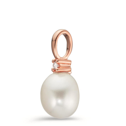 Pendentif Or rouge 18K Diamant 0.02 ct, w-pi1 perle d'eau douce blanc, 8.5 mm