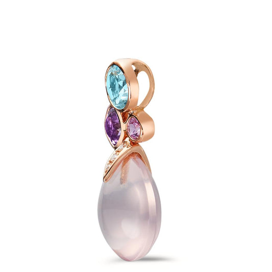 Pendentif Or rouge 18K Quartz rose, Saphir rose, Améthyste, Topaze bleu, Diamant 0.02 ct, 3 Pierres, w-si
