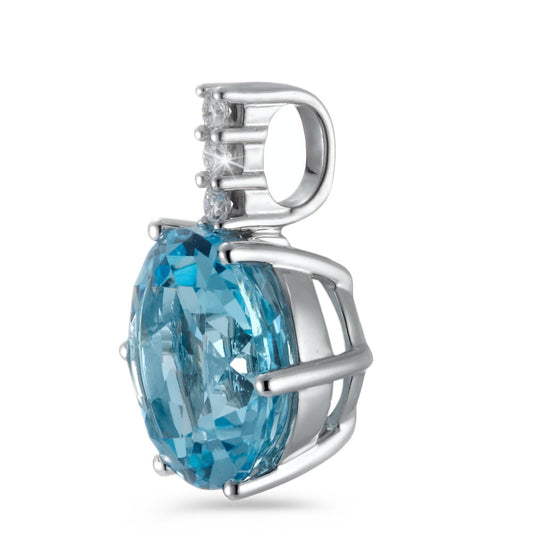 Pendentif Or blanc 18K Topaze bleu, 0.09 ct, 3 Pierres, brillant, w-si