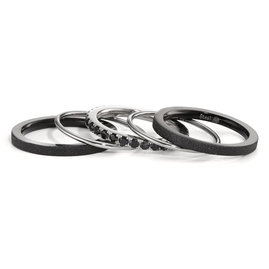 Bague Acier inoxydable Zircone noir