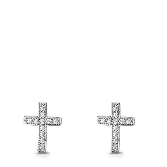 Clous d'oreilles Argent Zircone 22 Pierres Rhodié Croix