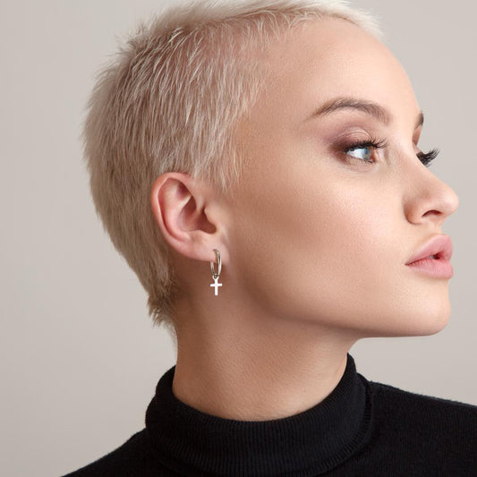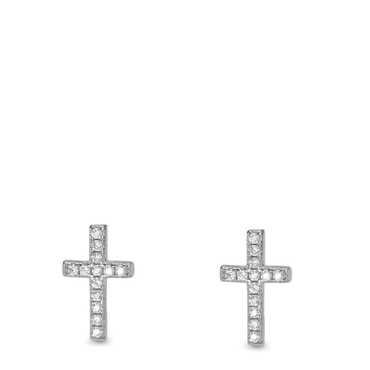 Clous d'oreilles Argent Zircone 26 Pierres Rhodié Croix