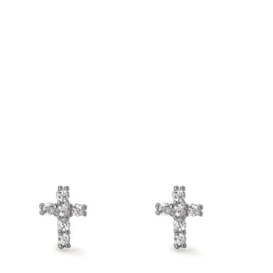 Clous d'oreilles Argent Zircone 12 Pierres Rhodié Croix