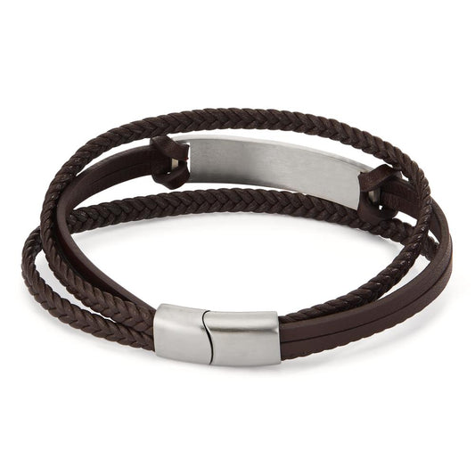 Bracelet Cuir, Acier inoxydable 21.5 cm Ø6 mm