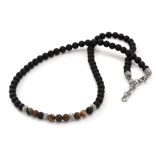 Collier Acier inoxydable, Métal Agate brun 50-54 cm Ø6.5 mm