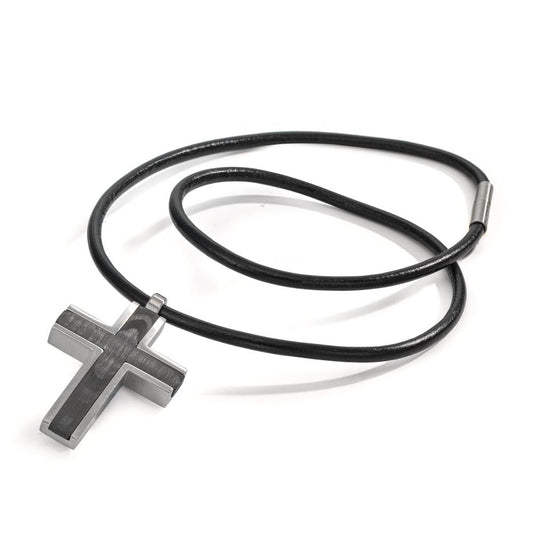 Collier Acier inoxydable, Cuir, Carbone Croix 60 cm Ø3 mm