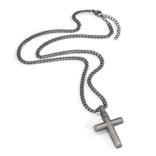 Collier Acier inoxydable gris PVD Croix 50-55 cm