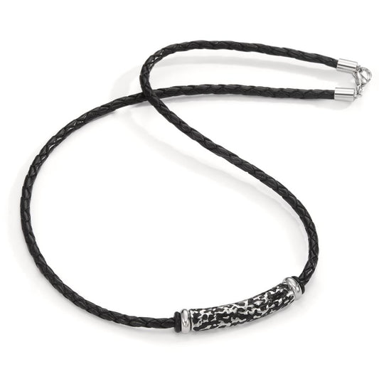 Collier Acier inoxydable, Cuir noir PVD 50 cm Ø3.7 mm