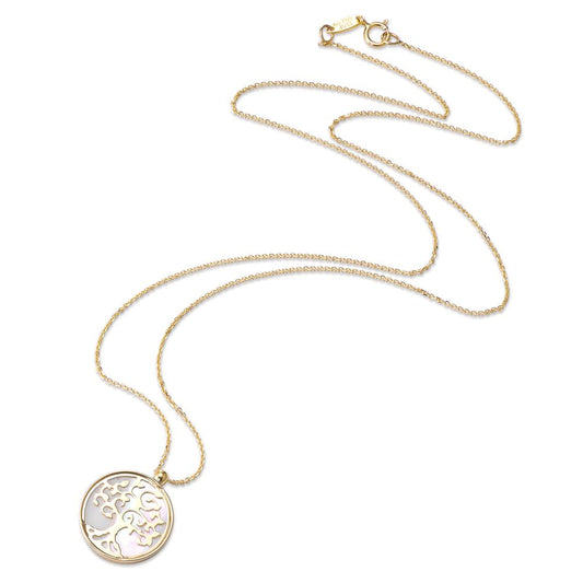 Collier Or jaune 18K nacre blanc Arbre de la vie 42 cm Ø14 mm