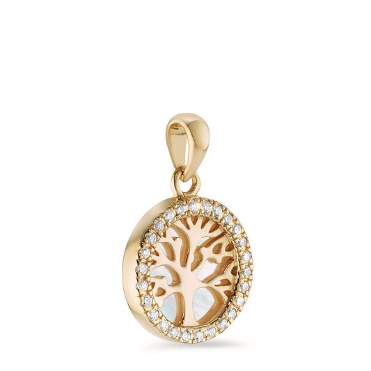 Pendentif Or jaune 9K nacre blanc Arbre de la vie Ø10.5 mm