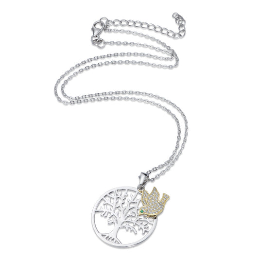 Chaînette avec pendentif Argent Zircone vert Rhodié Arbre de la vie 40-45 cm Ø25 mm