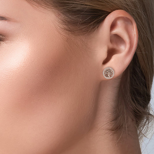 Clous d'oreilles Argent Zircone rosé Plaqué or Arbre de la vie Ø14 mm