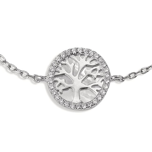 Bracelet Argent Zircone Rhodié nacre blanc Arbre de la vie Ø12 mm