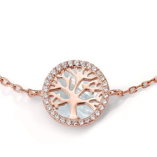 Bracelet Argent Zircone rosé Plaqué or nacre blanc Arbre de la vie 16-19 cm Ø12 mm