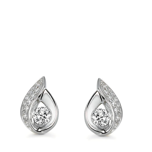 Pendant d'oreilles Acier inoxydable Zircone blanc, 2 Pierres Ø9.5 mm
