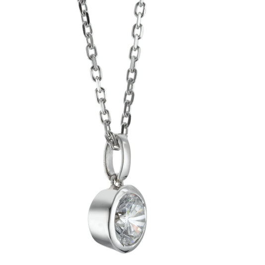 Chaînette avec pendentif Argent Zircone blanc, rond, 6 mm Rhodié 40-45 cm