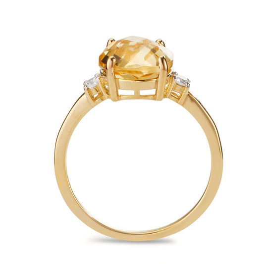 Bague Or jaune 9K Citrine, Zircone 2 Pierres