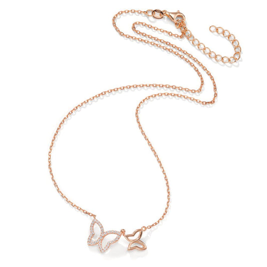 Collier Argent Zircone rosé Plaqué or Papillon 40-45 cm