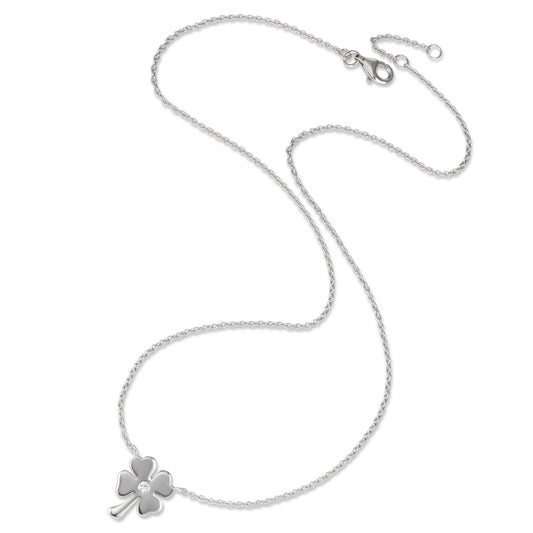 Collier Argent Zircone blanc Rhodié Feuille de Trèfle 40-42 cm