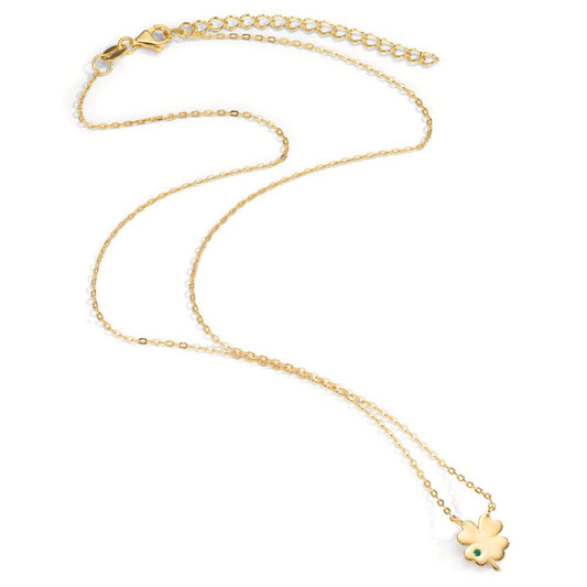 Collier Argent Zircone vert jaune Plaqué or Feuille de Trèfle 40-45 cm Ø8.5 mm