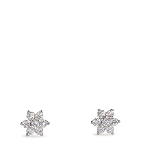 Clous d'oreilles Or blanc 18K Diamant 0.14 ct, 14 Pierres, w-si Étoile Ø4.5 mm