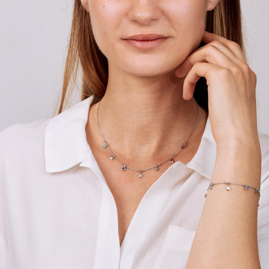 Collier Argent Zircone bleu, 4 Pierres Rhodié Étoile 40-45 cm