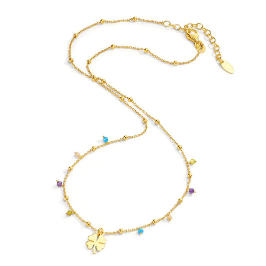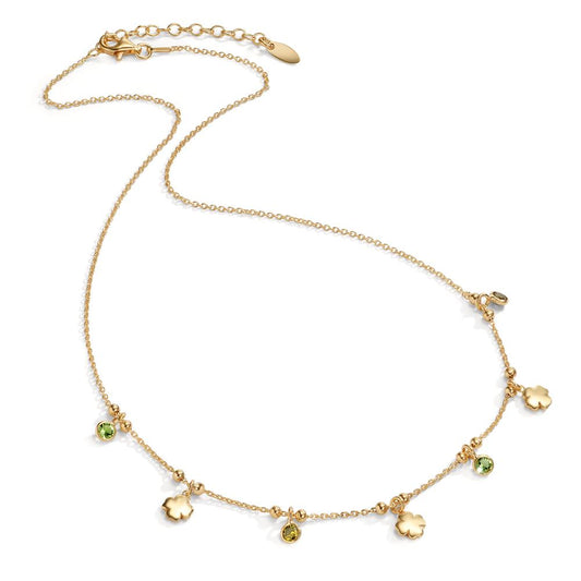 Collier Argent Zircone vert, 4 Pierres jaune Plaqué or Feuille de Trèfle 40-45 cm