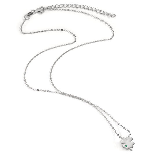 Collier Argent Zircone vert Rhodié Feuille de Trèfle 40-45 cm Ø8.5 mm
