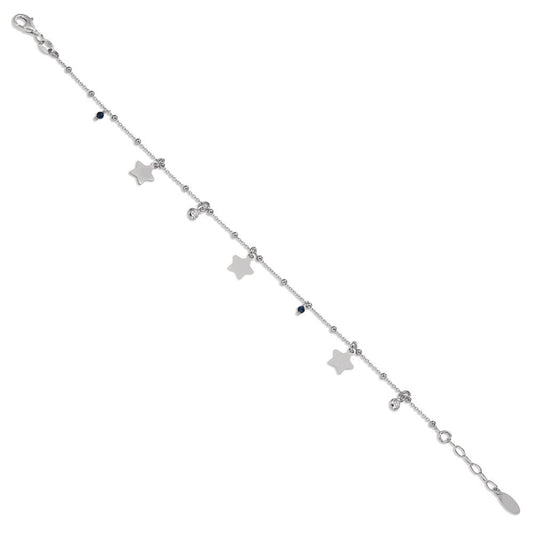 Chaînette de cheville Argent Zircone Rhodié [shining Pearls], 4 Perles, 3.5 mm Étoile 20-26 cm