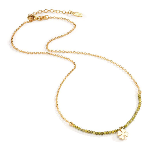Collier Argent Cristal vert jaune Plaqué or Feuille de Trèfle 40-44 cm