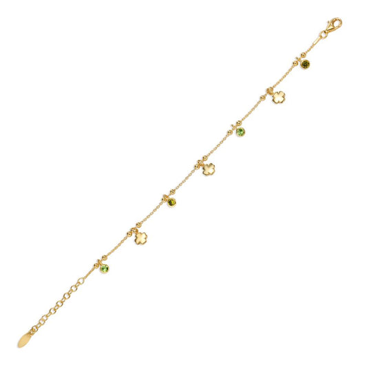 Bracelet Argent Zircone vert, 4 Pierres jaune Plaqué or Feuille de Trèfle 16-19 cm