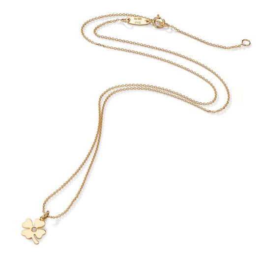 Collier Or jaune 14K Zircone Feuille de Trèfle 39-42 cm