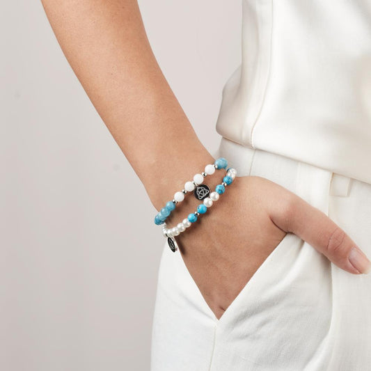 Bracelet Acier inoxydable Agate blanc, Jade bleu Celtique Ø6.5 mm